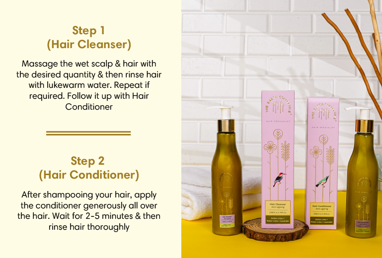 The Anti-Ageing Hai Cleanser and Conditioner Combo intensely hydrates & moisturizes the brittle and breakage prone hair. This combo replenishes the scalp & helps to make fragile strands healthy, strong & shiny while preventing premature greying