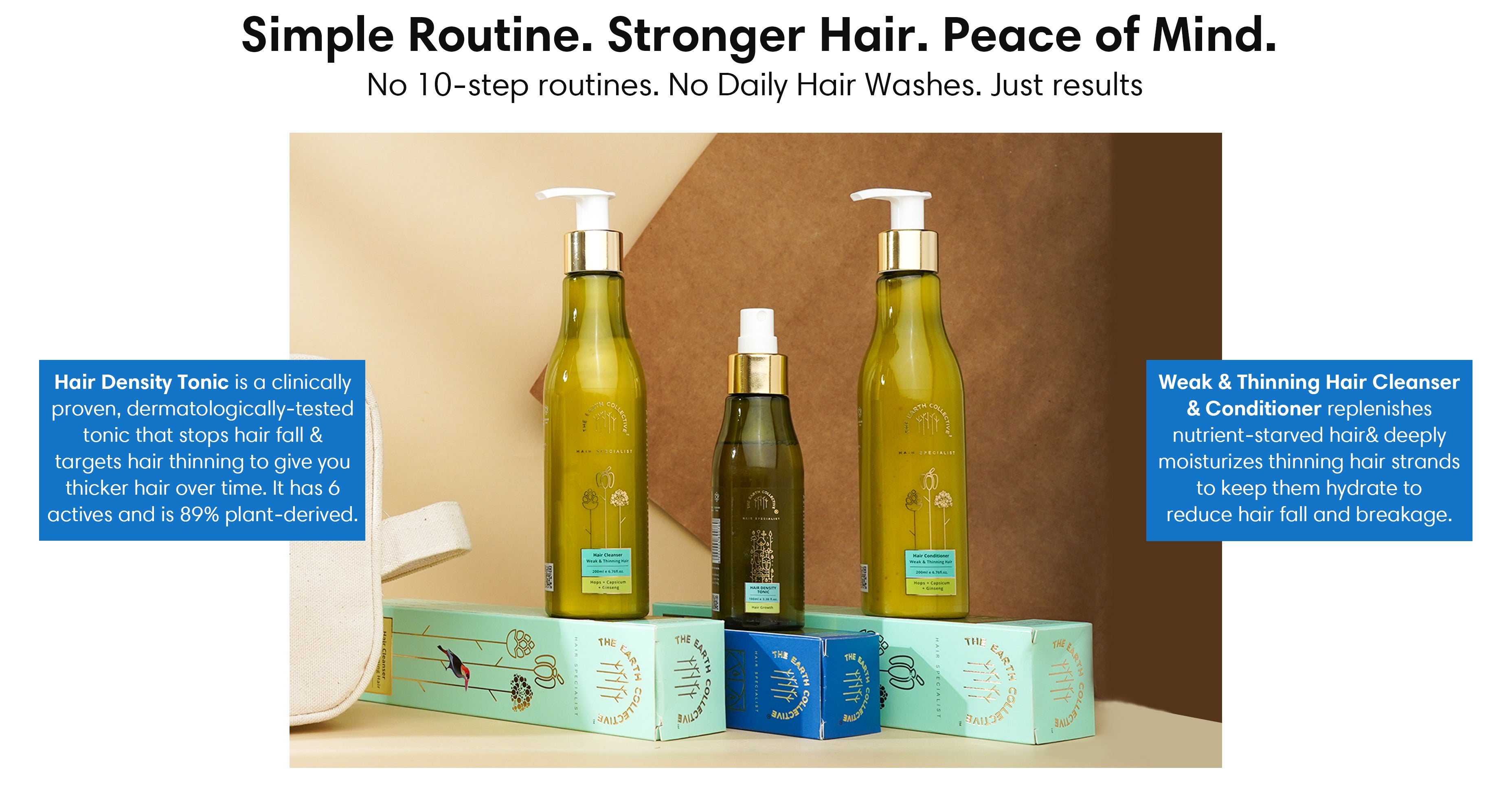 Due to hormonal changes during and after pregnancy, many women face overwhelming postpartum hair loss and hair fall after delivery. The Earth Collective’s Postpartum Hair Care Regime is a dermatologist-approved, clinically tested 3-step solution specifically designed to treat post pregnancy hair loss, thinning strands, and scalp sensitivity in a safe, natural way.