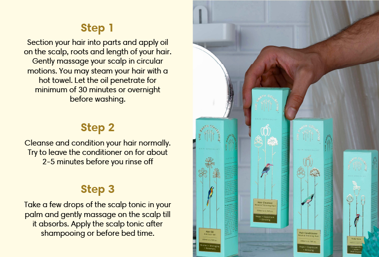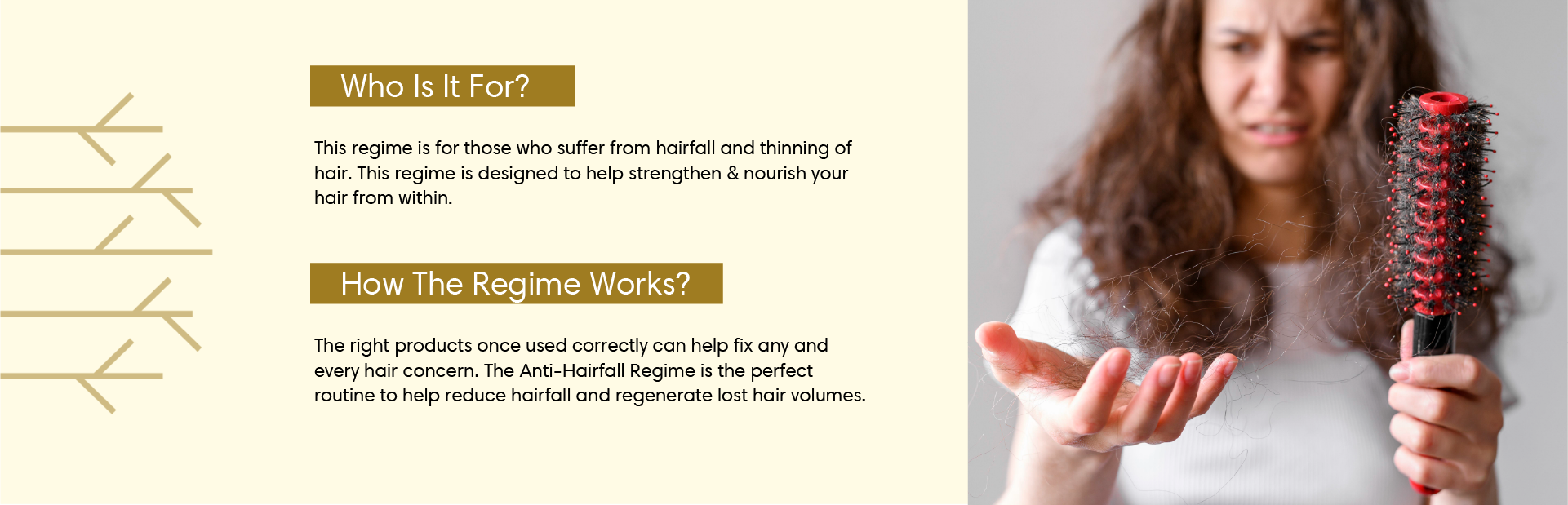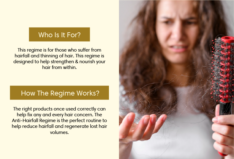 This regime is for those who suffer from hairfall and thinning of hair. Our Hair Specialists have curated this regime to help strengthen & nourish your hair from within. This 4-step regime will help stop hair loss and promote healthy hair growth.