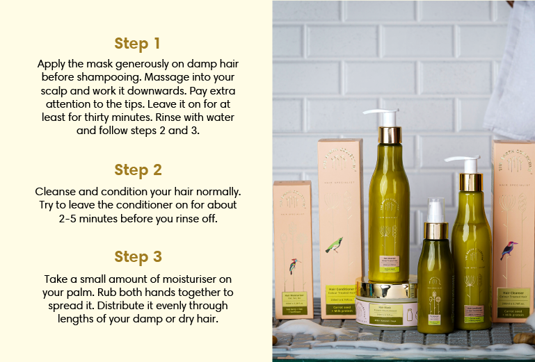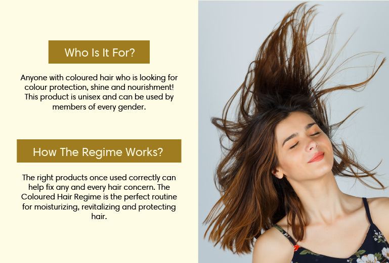 This regime has been formulated for those who frequently colour their hair. Our Hair Specialists have curated this range of products to ensure the colour and lustre of hair lasts longer. This 4 step regime can help maintain colour and shine while keeping hair healthy and bouncy.