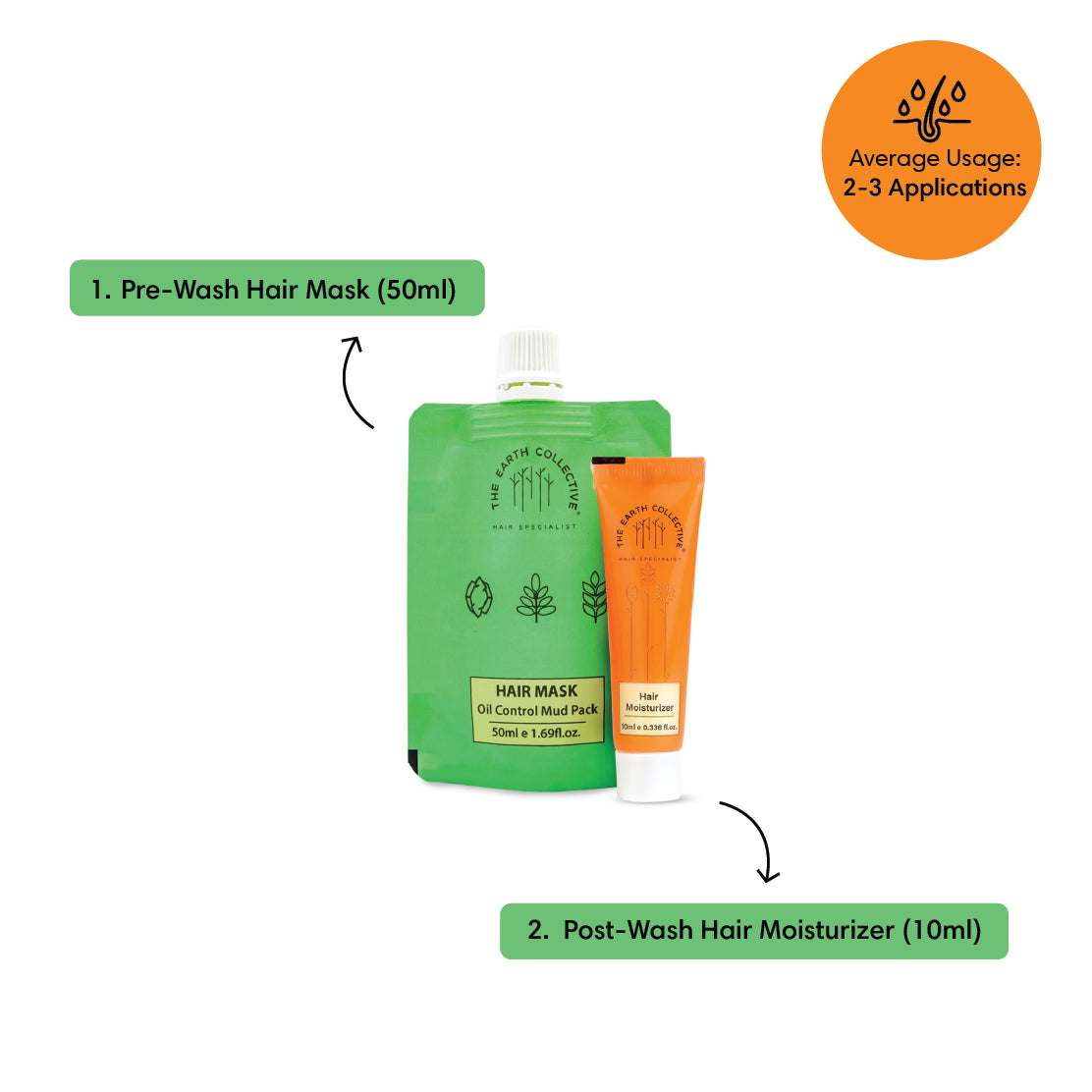 This trial pack comes in travel-friendly packaging. Depending on the length of your hair and usage, this combo should last for 2-3 applications on average.