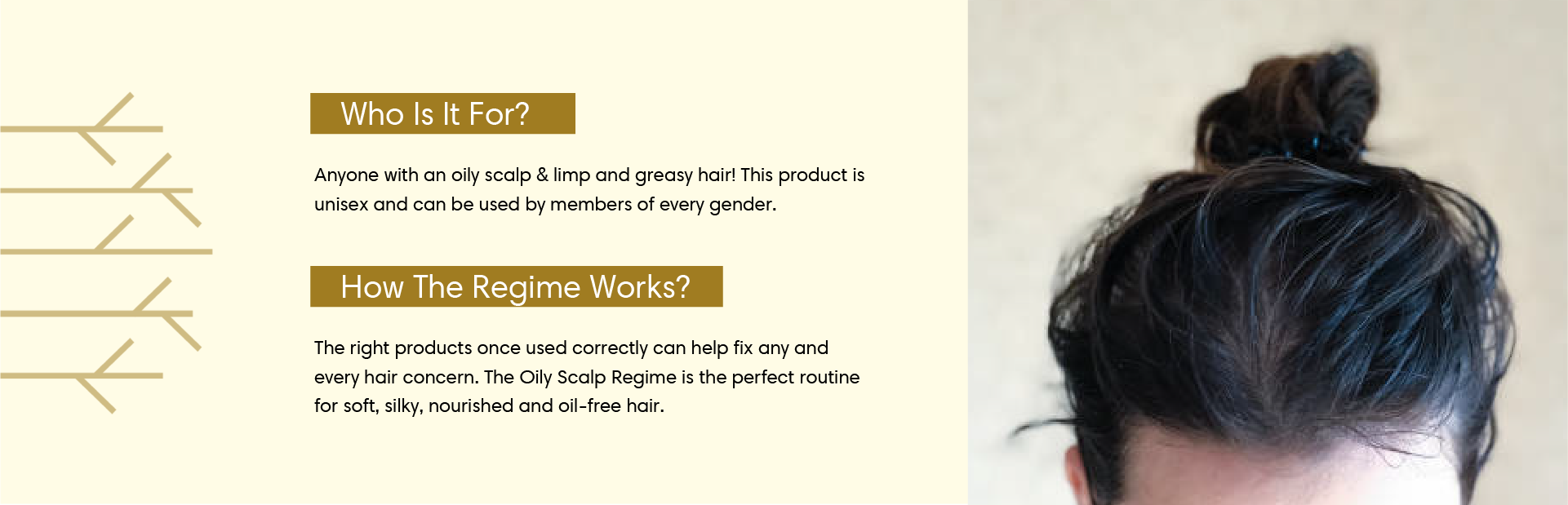 This regime is for those with excessively oily hair and a greasy scalp. Our Hair Specialists recommend using this regime to keep oil and grease levels in check while also maintaining healthy moisturization levels. This 3 step regime works for excessive oiliness in all hair types.